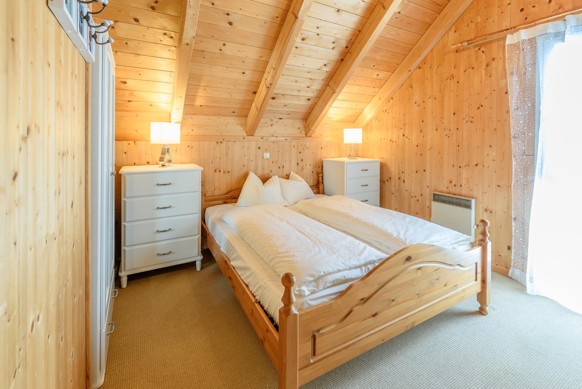 Die aus Massivholz gefertigte Hütte mit 70 m² haben wir neu übernommen. Das Drei-Zimmer-Chalet verfügt über zwei Stockwerke und ist geschmackvoll für bis zu sechs Personen eingerichtet.